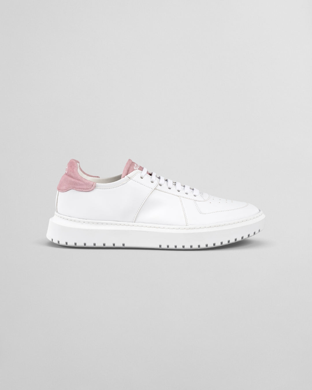 Découvrez le modèle Evolution Rosa Blush de Steve's , la sneaker blanche aux détails en velours rose.