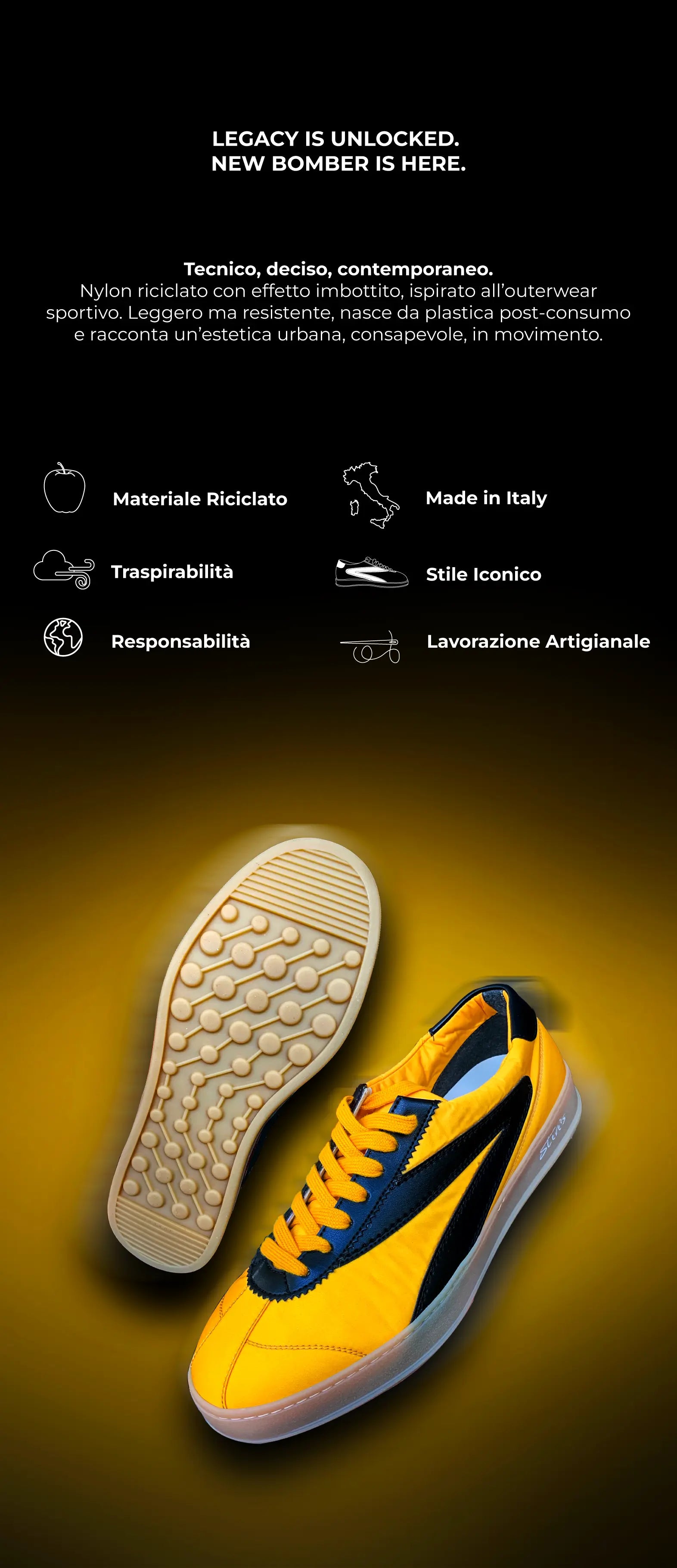 Scopri il comfort e lo stile con le nuove sneakers Steve's Legacy. Realizzate a mano in Italia con nylon riciclato dagli oceani e dettagli bio-based derivanti dalle mele. Ti offrono una calzata perfetta e un impatto ecologico minimo. Aggiungi un tocco di eleganza etica ai tuoi outfit!
